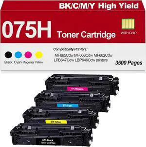 075 High Yield Toner Cartridge Compatible for MF665Cdw MF663Cdw MF662Cdw LPB647Cdw LBP646Cdw Laser Printers(BCMY)