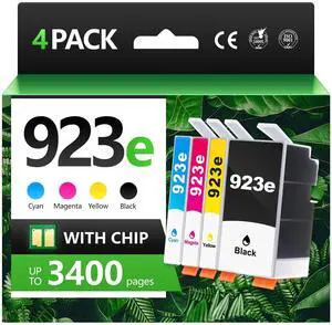 923XL 923e High Yields Ink Cartridges Combo Pack with Chip - Replacement for HP Ink 923 - Use for OfficeJet Pro 8120 8123 8130 8133 8135e 8138e 8139e 8122e Printer - 4 Pack Black Cyan Magenta Yellow