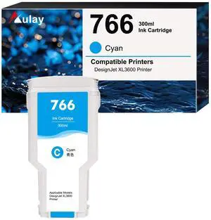 Aulay 766 Ink Cartridge for DesignJet XL 3600 Series Printer 1 Pack Cyan 300ML (P2V89A)