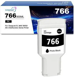 QUEENPRINT High speed printing 766 Ink Cartridge Photo Black P2V94A Pigment 766 PBK Ink Replacement for 766 Ink Cartridge for DesignJet XL 3600 3600dr Series Printer Ink 1-Pack 300ml