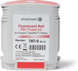 Pitney Bowes 787-0 Standard Ink Cartridge for SendPro P/Connect+ Series Mailing Systems, Red Ink, 56 ml