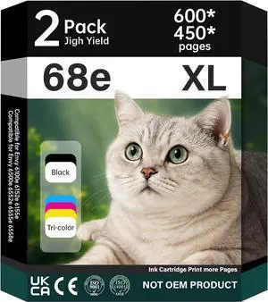 Ronhar 68XL Ink Cartridge Compatible for HP 68 Ink Cartridges Combo Pack Replacement for HP Ink 68 68e Compatible for HP Envy 6100e, 6152e, 6155e, 6500e, 6552e, 6555e, 6558e Printer Black/Color