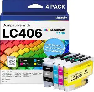 LC406 Ink Cartridges for Brother Printer for Brother LC406 Ink Cartridges LC406XL LC 406 XL Compatible with MFC-J4535DW MFC-J4335DW MFC-J5855DW MFC-J6555DW MFC-J6955DW Printer, 4 Pack