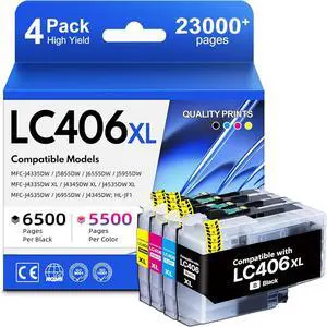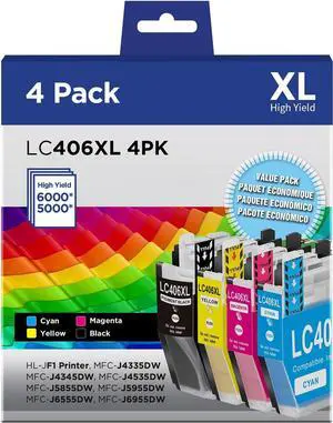 LC406XL Ink Cartridges Compatible for Brother LC406XL LC406 High Yield Work with Brother MFC-J4535DW MFC-J4335DW MFC-J5855DW MFC-J6555DW MFC-J6955DW Printer(Black, Cyan, Magenta, Yellow, 4Pack)