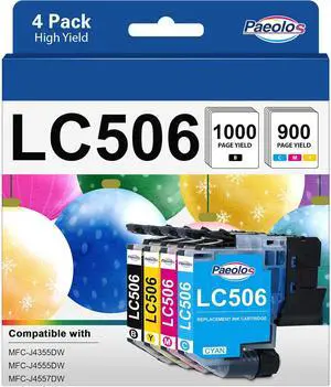 Paeolos LC506 Ink Cartridge Replacement for Brother LC506 Ink Cartridge High Yield Work for Brother MFC-J4355DW MFC-J4555DW MFC-J4557DW Printers (LC 506 Ink 1 Black 1 Cyan 1 Magenta 1 Yellow 4-Pack)