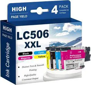 LC506XXL LC506XXLBK LC506XXLC LC506XXLM LC506XXLY Compatible Ink Cartridges for Brother MFC-J4355DW J4555DW J4557DW, 5000-Page Yield 1 Set