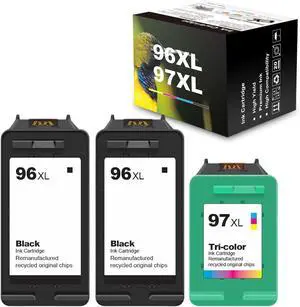 96XL 97XL Ink Cartridges Replacement for HP 96XL 96 XL 97XL 97 XL for Deskjet 6940 6988 6980 Officejet 7310 7210 PhotoSmart 2610 Printers (3 Pack, 2 Black 1Tri-Color)