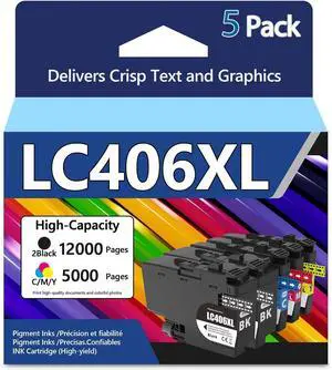 LC406 Replacement Combo Pack Ink Cartridges for Brother MFC-J4335DW J4340DW J4345DW J4535DW J4540DW J5855DW J5955DW J6555DW J6955DW Printer (2 Black, 1 Cyan, 1 Magenta, 1 Yellow)