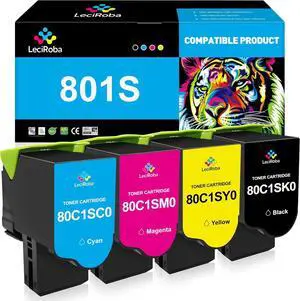 LeciRoba Compatible for Lexmark 801S 801SK 80C1SK0 80C1SC0 80C1SM0 80C1SY0 Toner Cartridge CX310 CX310n CX310dn CX410 CX410de CX410dte CX410e CX510 CX510de CX510dthe CX510dhe Printer (4-Pack)
