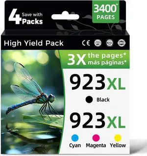 923 Ink Cartridge Compatible for HP Printers 923xl HP923 XL Combo Pack 8130e 8135e for HP 923e HP923XL Black Color to OfficeJet Pro 8138e 8139e 8125e 8122e 8124e 8120 Black Cyan Magenta Yellow,4-pack