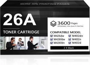 26A CF226A Toner Cartridge 2 Pack Replacement for HP 26A CF226A 26X CF226X Pro M402dn M402n M402dw Pro MFP M426fdw M426fdn M426dw Series Printer Ink (with Chip 7,200 Pages in Total)