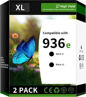 936e Ink Cartridge Combo Pack Compatible Replacement for HP936e HP936 936 e Works with OfficeJet 9120 9122e OfficeJet Pro 9110b 9125e (2 Pack, Black)
