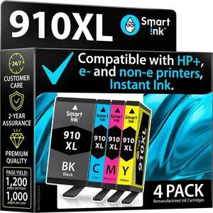 Smart Ink Remanufactured Ink Cartridges Replacement for HP 910XL 910 XL Black and Color Combo Pack to use with OfficeJet Pro 8025e 8025 8028e 8028 8035e 8035 OfficeJet 8015e 8022e 8015 8022 Printers