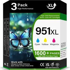 951XL Ink Cartridges Combo Pack High Yield Compatible Replacements for HP 951 Cyan Magenta Yellow, 951XL Color Printer Ink Fit for OfficeJet Pro 8600 8610 8620 8630 8615 251dw 271dw (3-Packs)