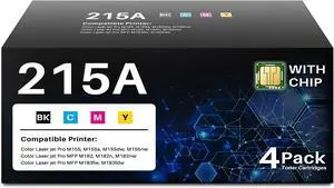 (With Chip) Compatible 215A Toner Cartridges 4 Pack Replacement for HP 215 A 215X Cartridges W2310A W2311A W2312A W2313A Use with Color Pro MFP M183fw M182nw M182n M155a M155nw Printer (BK/C/M/Y)
