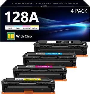128A Toner Cartridges 4 Pack Replacement for HP 128A Toner CE320A CE321A CE322A CE323A Work with Pro CP1525n CP1525nw CM1415fn CM1415fnw Printer (1BK/1C/1M/1Y)