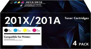 201X Toner Cartridge 4 Pack High Yield M277dw Compatible for HP 201X 201A M252dw CF400X Color Pro MFP M277dw M277c6 CF401X CF402X CF403X Printer Black/Cyan/Yellow/Magenta