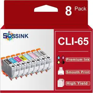 CLI-65 Ink Cartridges Compatible Replacement for Canon CLI 65 High Yield Work for Canon PIXMA PRO 200 200S Printer(8Pack,1BK/1C/1M/1Y/1PM/1PC/1GY/1LGY)