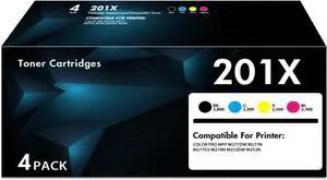 201X Toner Cartridges 4 Pack High Yield M277dw Compatible for HP 201X 201A for HP Color Pro MFP M277dw M252dw M277c6 M277 M252 CF400X CF401X CF402X CF403X Printer Ink (Black Cyan Yellow Magenta)