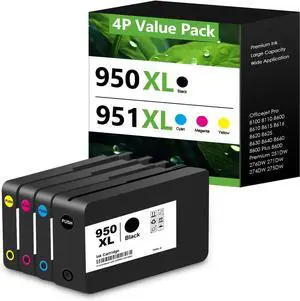 950XL 951XL Ink Cartridges Combo Pack Replacement for HP 950 951 XL HP950 HP951 XL for OfficeJet Pro 8100 8110 8600 8610 8615 8616 8620 8625 8630 8640 8660 251DW 276DW 271DW (BK C Y M 4Pack)