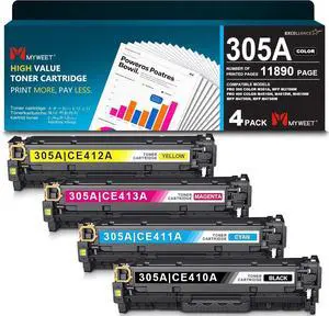 305A High Yield Toner Cartridge 4-Pack Black Cyan Magenta Yellow Replacement for HP 305A toner cartridge Pro 400 color M451 MFP M475, Pro 300 Color M351a Series Printers | CE410A CE411A CE412A CE413A