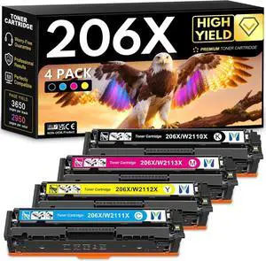 206X High Yield Toner Cartridge 4-Pack With Chip Replacement for HP 206X W2110X W2111X W2112X W2113X Toner Cartridge work for Color Pro M255dw M255nw, MFP M283cdw M283fdn M283fdw Printers (B/C/M/Y)