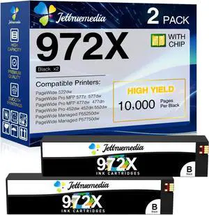 2-Pack 972X Black Ink Compatible with HP 972A 972X PageWide Cartridge High Yield Black Ink Cartridge to use with PageWide Pro MFP 477dw 552dw 577dw 477dn 577z Pro 452dw 452dn P55250dw P57750dw Printer