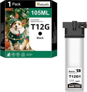 Remanufactured T12G Ink Bag Replacement for T12G120 Ink Cartridges Compatible for Workforce Pro WF-M5399 WF-M5899 Printers (1 Black)