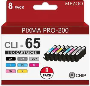 MEZOO CLI-65 CLI65 Ink Cartridge with Chip High Capacity Compatible with Canon CLI65 CLI-65 Ink Cartridges Replacement for Canon PIXMA Pro-200 Pro-200S Printer (8-Pack, BK, C, M, Y, PM, PC, GY, LGY)