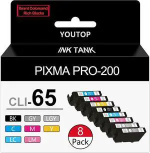 CLI 65 Ink Cartridges Eight Color 8PK (1BK, 1C, 1M, 1Y, 1PM, 1PC, 1GY, 1LGY) Compatible CLI65 CLI-65 Replacement for Canon CLI-65 Ink Cartridge with PIXMA PRO-200, PIXMA PRO-200S Printers