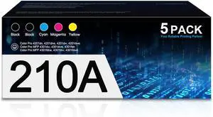 210A Toner Cartridges 5 Pack | Replacement for HP 210A 210X 210 with Chip Toner Works Color Pro MFP 4301fdn 4301 Pro 4201dw 4201dn 4201 Series Printer | W2100A W2101A W2102A W2103A High Yield Ink