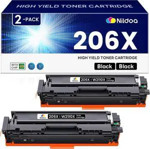 206X W2110X Toner Cartridge Black 2 Pack High Yield Replacement for HP 206X W2110X Color Pro M255dw M255nw; MFP M282nw M283cdw M283fdn M283fdw Ink Cartridges with Chip