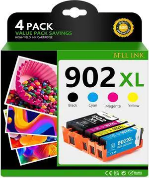 902XL Ink Cartridges Combo Pack Replacement for HP Ink 902XL 902 Work with Officejet Pro 6978 6968 6974 6975 6960 Officejet 6951 6954 6956 6958 Printers (4 Pack, Black Cyan Magenta Yellow)
