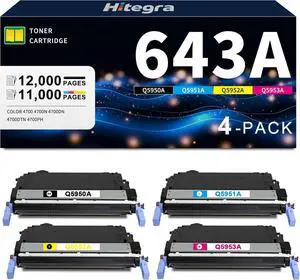 643A Toner Cartridges 4-Pack Q5950A Q5951A Q5952A Q5953A Replacement for HP 643A Toner Compatible with Color 4700 4700n 4700dn 4700dtn 4700ph Printer Toner, Black Cyan Yellow Magenta