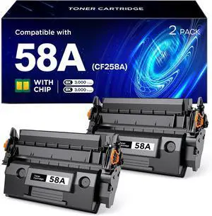 58A CF258A Toner Cartridge (with chip) Compatible Replacement for HP 58A CF258A 58X CF258X Laserjet MFP M428fdw M428dw M428fdn Pro M404n M404dn M404dw M404 M428 Toner Laser Jet Printer (Black 2-Pack)