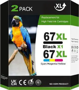 PayForLess 67XL Ink Cartridge for HP Ink 67 Compatible for HP Deskjet 2755e Ink Cartridges 2700 2855e 2755e 2755 4155e 4255e for Envy 6000 6055e 6400 2Pack