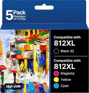 812XL Ink Cartridge Combo Pack Remanufactured for Epson 812 Ink Cartridges 812XL (5-Pack, 2 Black, 1 Cyan, 1 Magenta, 1 Yellow) Work with Epson Workforce Pro WF-7840 WF-7310 WF-7820 EC-C7000 Printers