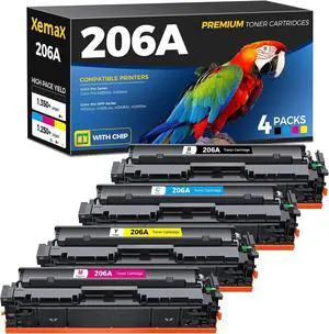 206A Toner Cartridges 4 Pack with Chip Compatible with HP 206A W2110A Replacement for Color Laser Jet Pro M255, MFP M282 M283 Series