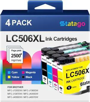 LC506XL LC 506XL Ink Cartridges Compatible for Brother LC506 LC 506 Ink Works for Brother MFC-J4355DW MFC-J4555DW MFC-J4557DW Printer (4 Pack,with Chip)
