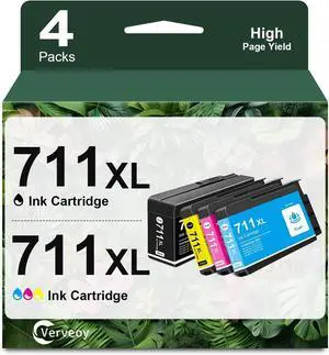 711 Ink Cartridges Replacement for HP Designjet 711 XL Ink cartridges CZ133A CZ130A CZ135A CZ132A Ink for DesignJet T530 T130 T100 T120 T520 T125 T525 Printer Ink (4-Pack, BK/C/M/Y)
