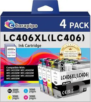 LC406 / LC406XL Ink Cartridges Compatible Replacement for Brother Printer Ink LC406 LC406 XL MFC-J4335DW Work for MFC-J6555DW MFC-J6955DW MFC-J4335DW MFC-J5855DW Printers4Pack,LC406 XL