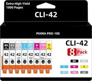 CLI-42 Ink Cartridges Compatible for Canon PRO 100 Ink Cartridge for Canon CLI-42 CLI42 CLI 42 Ink Cartridges Value Pack for Pixma PRO-100 PRO-100S Printer(8 Color)