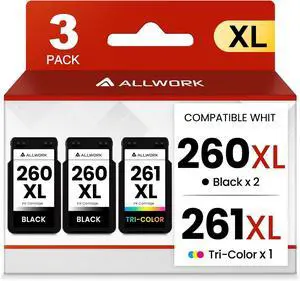 260XL 261XL Replacement for Canon 260 and 261 Ink Cartridges PG-260 CL-261 XL High Yield for Pixma TS6420a TS6400 TS6420 TR7020a TR7000 TR7020 TS5320 TS5300 Printer Ink Cartridge(2 Black, 1 Tri-Color)