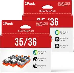 PGI-35 CLI-36 TR150 TR160 Ink Cartridge 6 Pack for 35 36 Ink Cartridge Work for Canon TR150 Ink Cartridges for PIXMA IP110 TR160 IP100 TR152 IP 110 IP100 Ink PGI 35 Black CLI 36 Color Printer 4 BK 2C