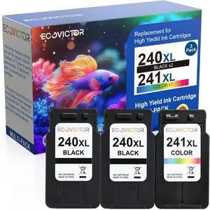 EcoVictor PG-240 CL-241 XL Ink Cartridge Replacement for Canon 240XL 241XL Combo Pack (3-Pack) Compatible PIXMA MG3620 MG3600 TS5120 MG3520 MG3220 MG2120 MG4220 MX392 MX472 MX522 Printer (Black Color)