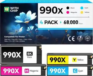 990X Ink Cartridges set 4-Pack High Yield Replacement for HP 990 990X Ink Compatible with HP PageWide Pro 750dw 777z MFP 772dn 755dn 774dn 774dns 779dn 779dns Managed Color E75160dn Printer Black Cyan