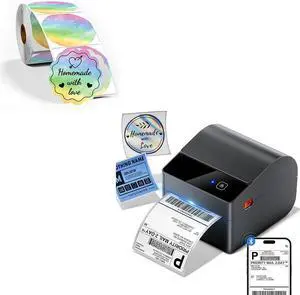 A64M Bluetooth Shipping Label Printer with 2x2 Laser Round Thermal Labels 400pcs