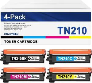 TN210 Toner Cartridge Set 4 Pack Replacement for Brother TN-210 TN210BK TN210C TN210M TN210Y Work with MFC-9125CN MFC-9325CW HL-3045CN HL-3070CW Printer Toner, TN-210 BK/C/M/Y
