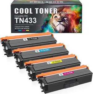 Cool Toner Compatible TN433 Toner Cartridge Replacement for Brother TN433 TN-433 MFC-L8900Cdw for Brother HL-L8360Cdw HL-L8260Cdw MFC-L8610Cdw HL-L8360Cdwt Printer (Black Cyan Magenta Yellow, 4 Pack)