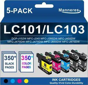 LC101XL Ink Cartridges High Yeild Compatible LC101/103 (2BK/C/M/Y 5-Pack) Replacement for Brother LC101 Ink Cartridges Work with Printer MFC-J870DW MFC-J6920DW MFC-J6520DW MFC-J450DW